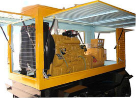 托里柴油发电机组/移动柴油发电机组设计独具创新,机动性高、重心低、制动安全、制造精良、外形美观。 托里拖车车架采用槽梁焊接成框架结构,节点选择合理、强度高、刚性好;同时装有钢板弹簧悬架结构;拖车采用高度可调节插销式牵引架,适用于各种高度牵引车;采用圆形钢管焊接直通式车轴,结构紧凑,安全可靠;车架四角设有机械式支撑装置,配备惯性行车制动、驻车制动和脱离应急制动,确保机组在各种状况下的安全;车架前端设有支撑轮,具备承受机组垂直载荷的功能的同时还具备导向功能;整车配备转向和刹车指示灯,同时装有尾灯标准插头